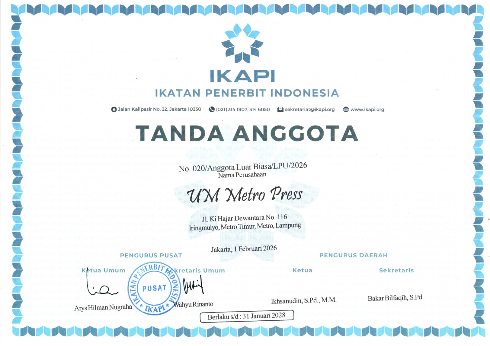 Metro, 11 Februari 2026. Kabar membanggakan kembali datang dari civitas akademika Universitas Muhammadiyah (UM) Metro. Unit penerbitan kampus, UM Metro Press, secara resmi telah terdaftar sebagai anggota luar biasa di Ikatan Penerbit Indonesia (IKAPI).